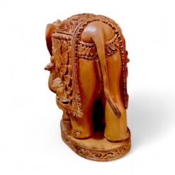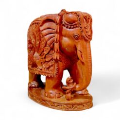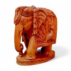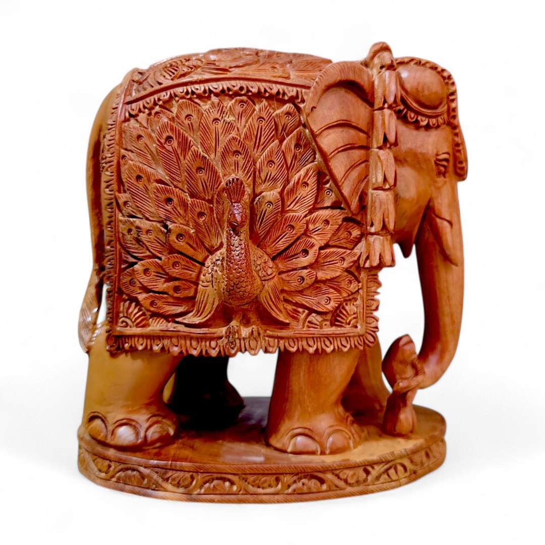 Bring home a symbol of wisdom, prosperity, and artistic excellence with this hand-carved sandalwood elephant statue, exquisitely detailed with an intricate peacock carving. Crafted by skilled Indian artisans, this 5-inch masterpiece blends spiritual symbolism with timeless décor appeal—perfect for elevating your living space or gifting with meaning.