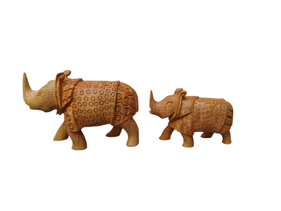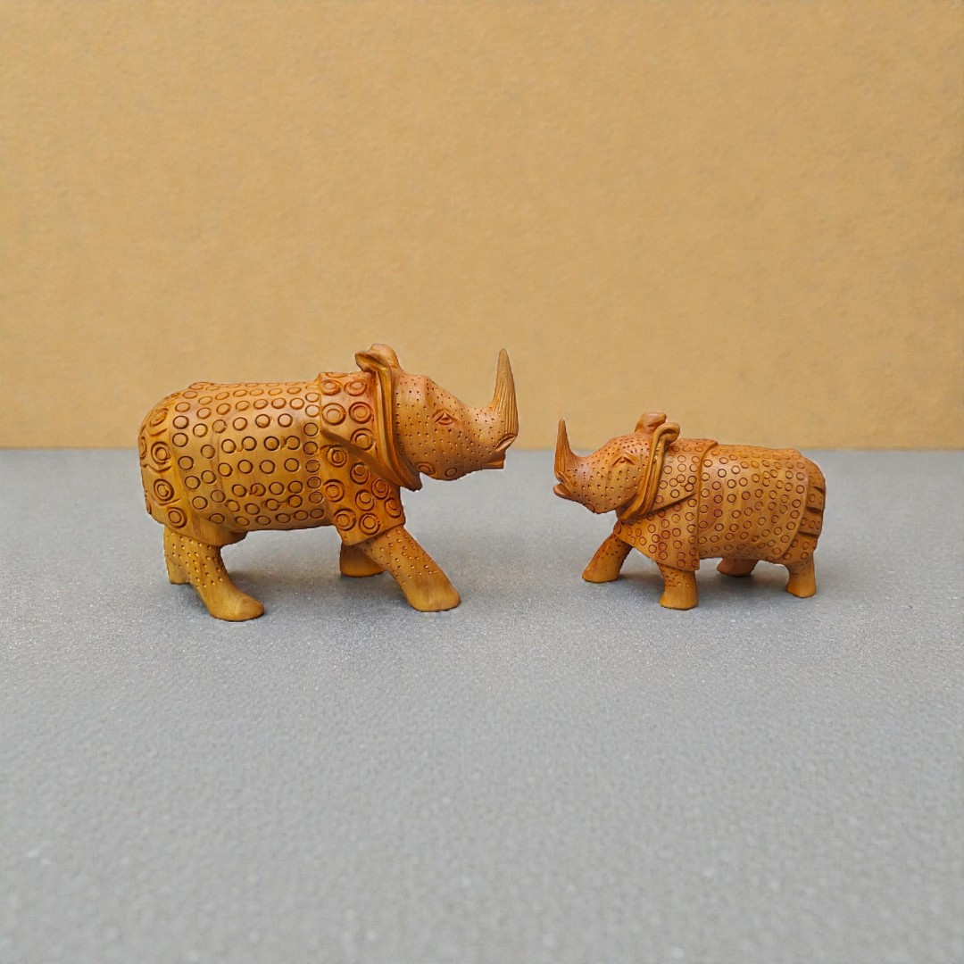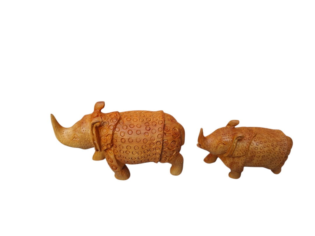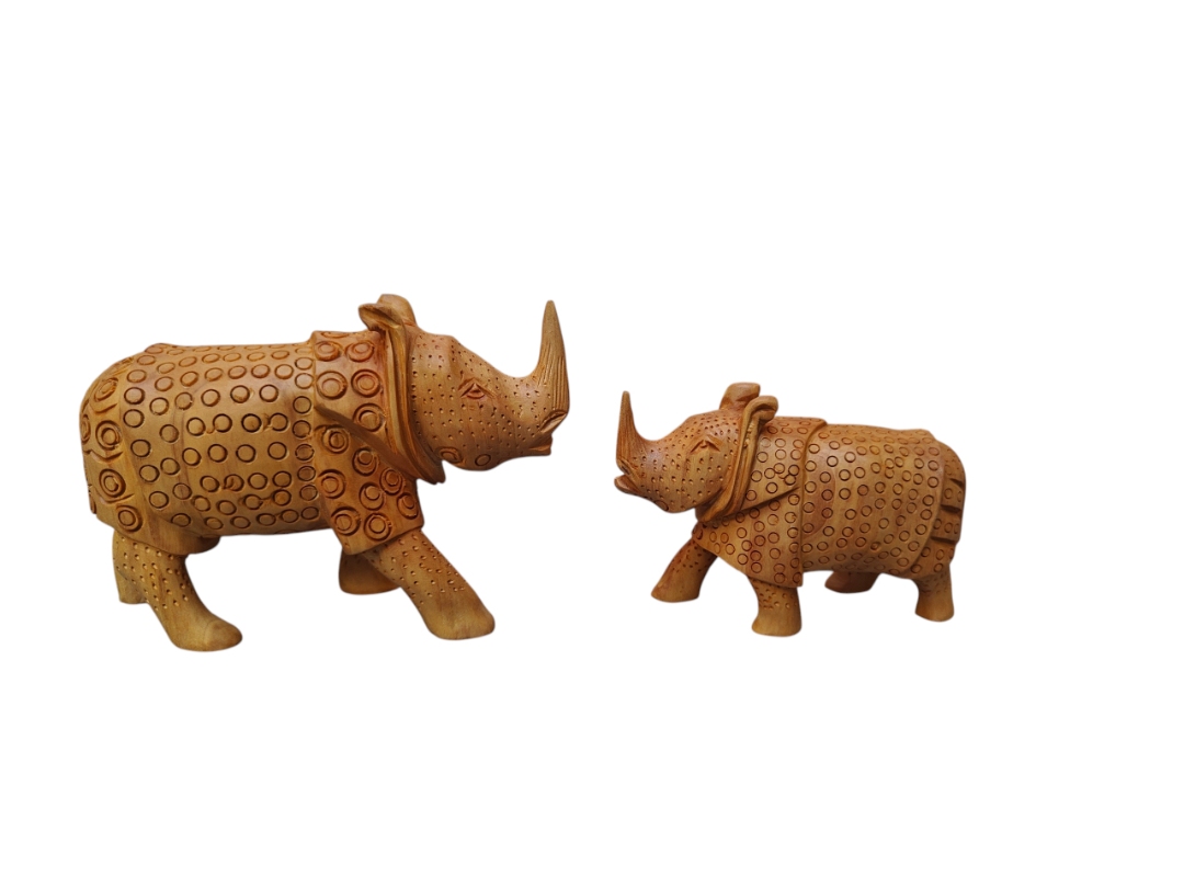 Wooden rhino statue symbolizing strength, protection, and resilience, the rhino makes this statue a meaningful décor accent and a thoughtful gift. Ideal for home décor, office décor, wildlife lovers, eco-conscious gifting, corporate gifts, and souvenir collections,