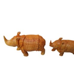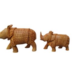 Finished in natural wood tones, this wooden rhino statue blends effortlessly with both modern and ethnic interiors. Its smooth polish enhances the natural texture of the wood, creating a warm, earthy aesthetic. Compact yet impactful, the 3-inch and 4-inch sizes are perfect for display on desks, shelves, side tables, or curated décor corners.